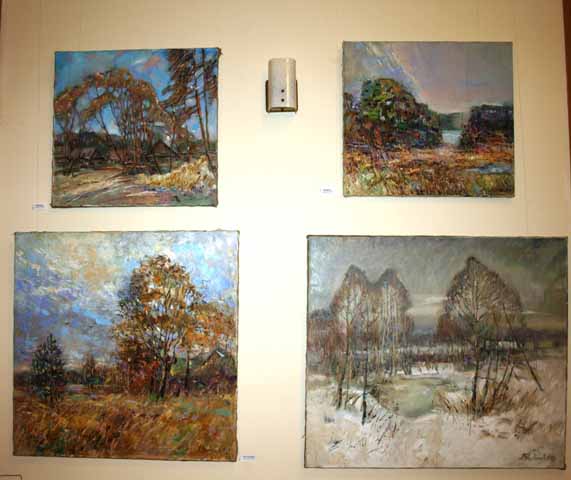 The majority of the paintings are landscapes. The beauty of Belarusian nature is manifested by way of expressing its real mood, which is vital and substantial for the artist himself.